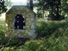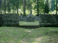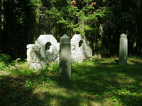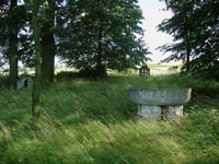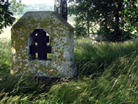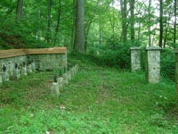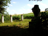 kamienne słupy przykryte stożkowym daszkiem. W części pierwszej leżą