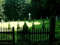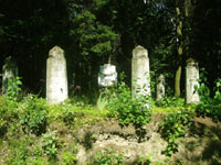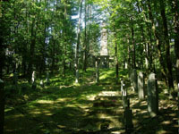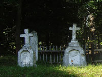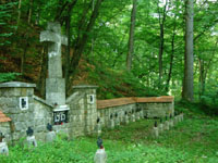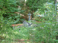 przez las zobaczymy cmentarz po obu stronach drogi.