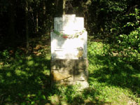 leży w lesie w pobliżu cmentarza. Brak tablicy informacyjnej oraz