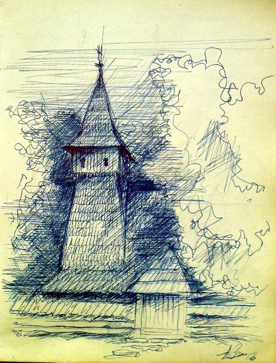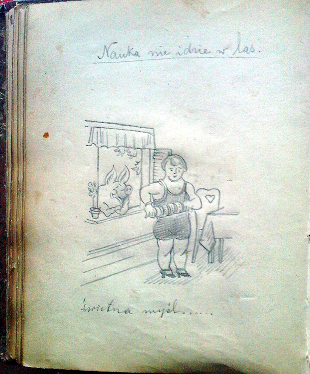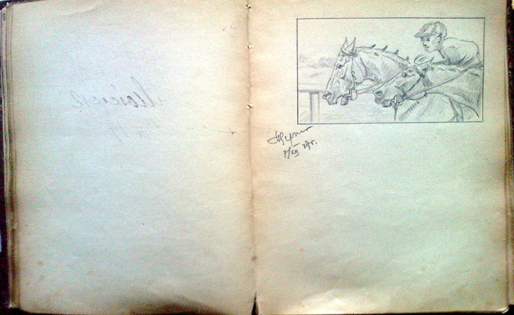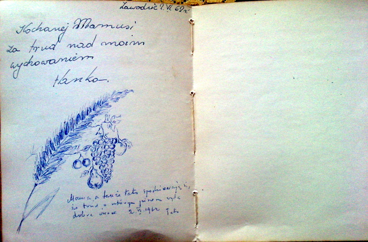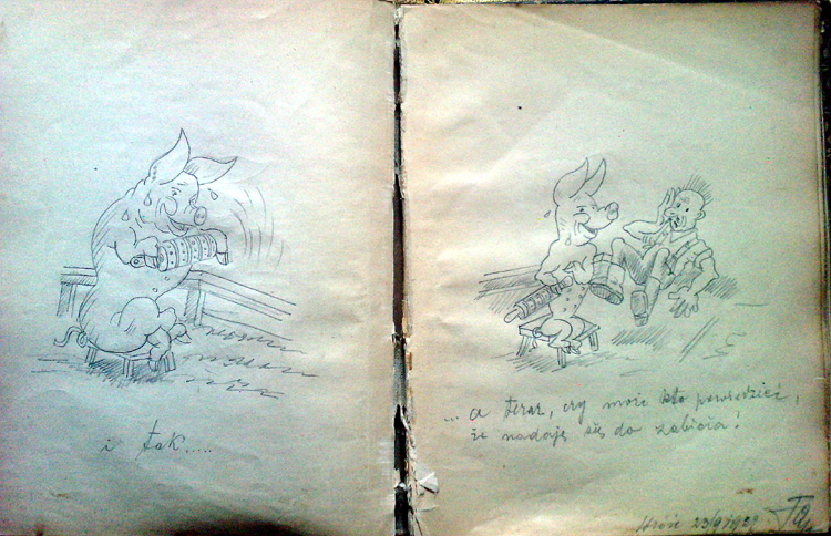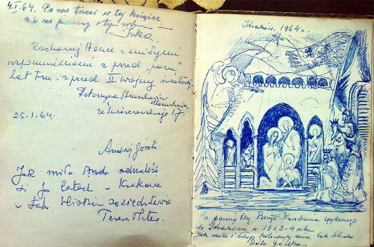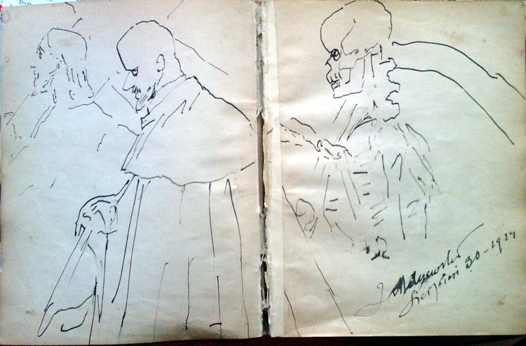 księdze gości kilka rysunków. Malując portret jednego z domowników,