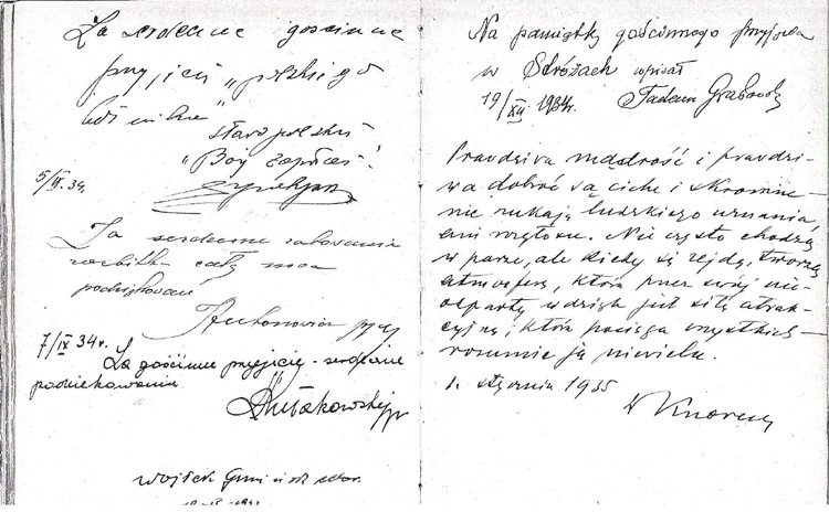 Dwór Dunikowskich w Stróżach - Księga Gości